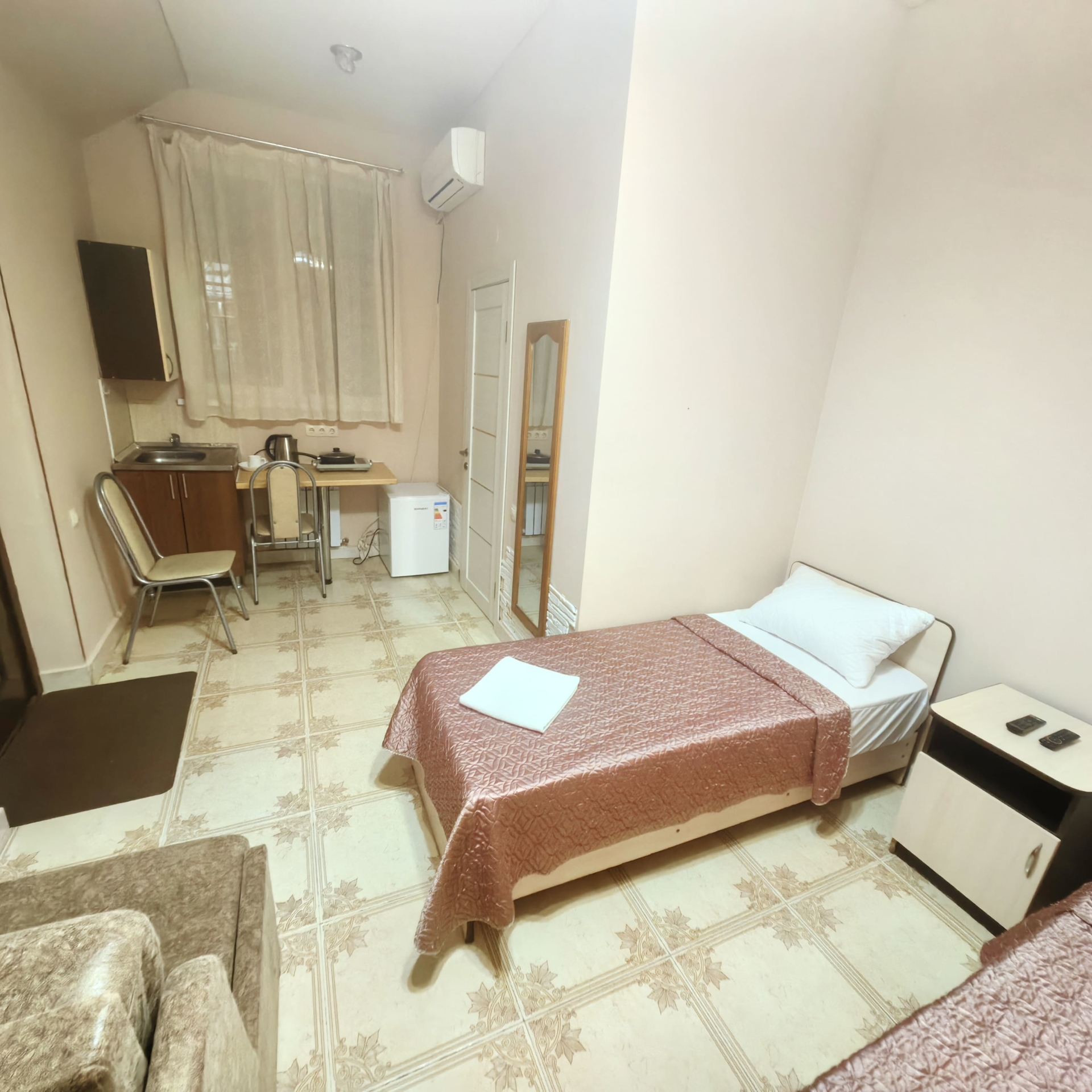 Все номера оборудованы: ТВ, кондиционер, санузел. Площадь номеров 14 кв.м.