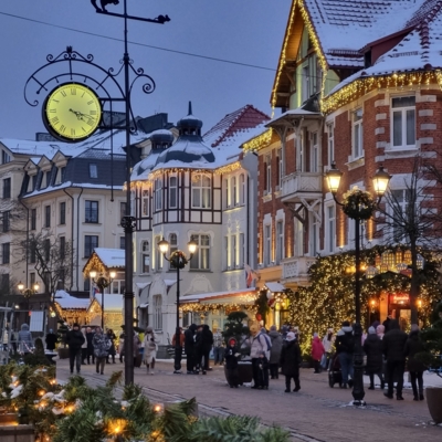 В это время года город пронизан праздничной атмосферой Нового года и Рождества: переливающиеся гирлянды, живописные улочки со старинной атмосферой. Зеленоградск, или Кранц — город на Балтийском побережье, словно сошедший со страниц старых немецких сказок. Этот город прекрасен в любое время года.