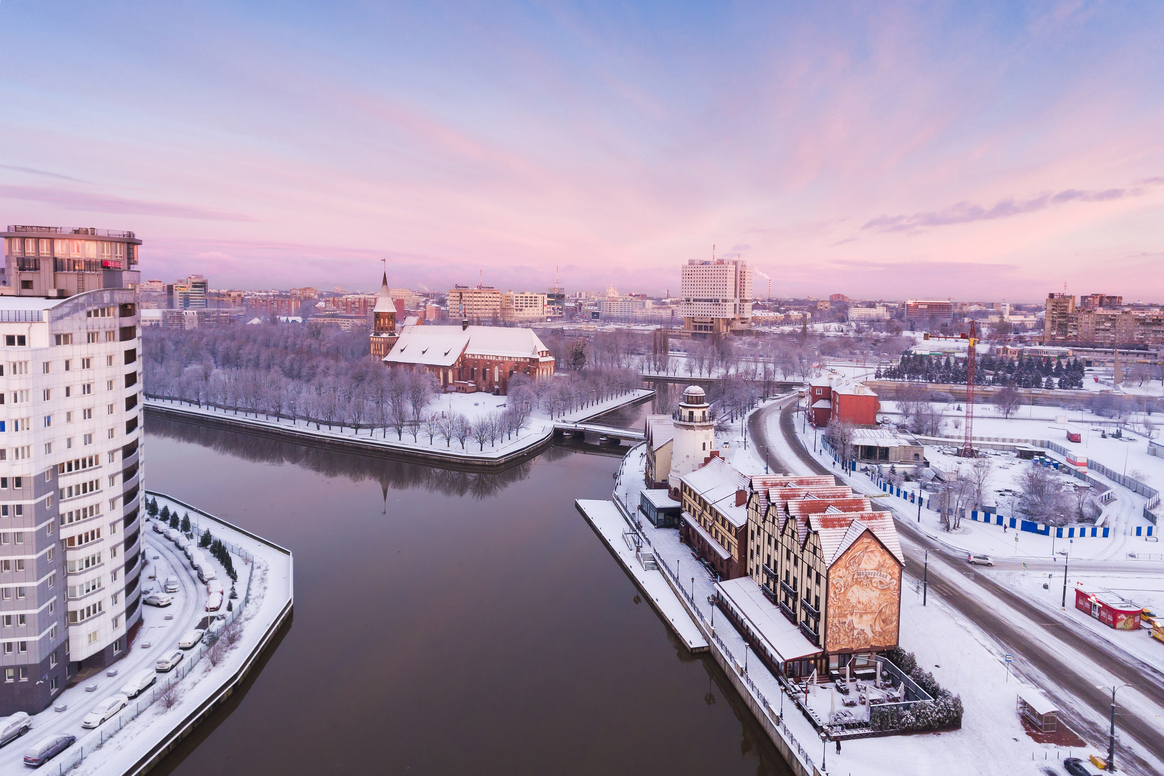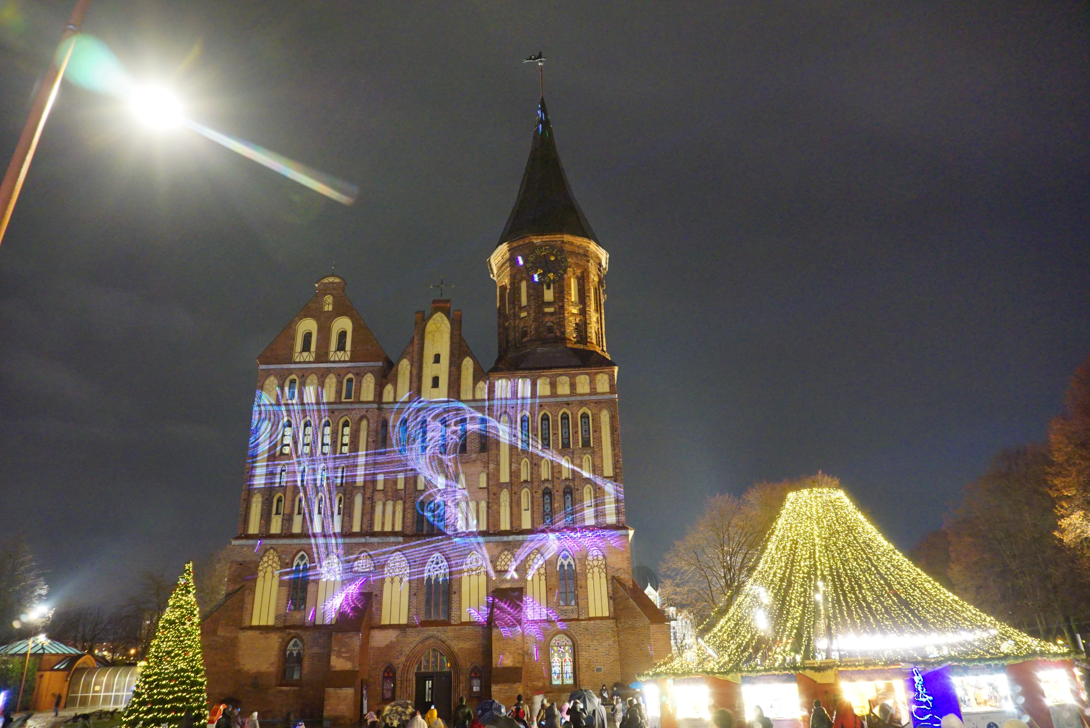 Экскурсия по острову, во время которой, вы сможете разгадать «Тайну семи мостов». А ещё вы насладитесь сказочной новогодней атмосферой Рождественской ярмарки на острове и лазерным шоу на Кафедральном соборе. Главным сюрпризом ярмарки, конечно, станет горячий напиток, который мог родиться только в этих местах. Глинтвейн "KantWein" напоминает о том, что традициям острова уже не одна сотня лет. И после этого пройдёте по Медовому мосту, сохранившемуся после войны, и окажетесь в «Рыбной деревне». Вечернее освещение в Рыбной деревне представлено архитектурной подсветкой зданий в стилях фахверк, а также вечерней иллюминацией, создающей сказочную атмосферу старого европейского города на фоне реки Преголя.