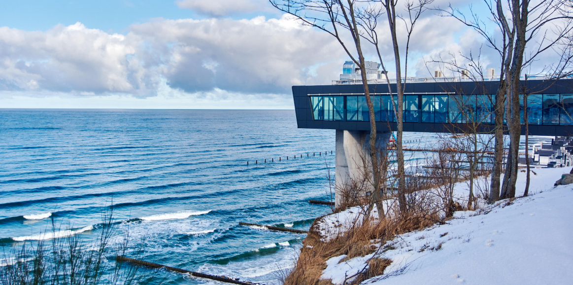Вас встретят маленькие виллы бывшего Раушена. Прогуливаясь по зимнему парку, полюбуетесь изящной «Нимфой». Осмотрите визитную карточку города – сказочную Водонапорную башню, поприветствуете «Царевну-лягушку». Увидите современный театр эстрады Янтарь-холл — место проведения «Голосящего КиВиНа. В завершение спуститесь на Новый променад, полюбуетесь видами зимнего Балтийского моря.